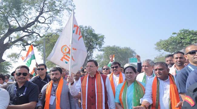 बडा़ेदरा/देहरादून: केंद्रीय रक्षा मंत्री श्री राजनाथ सिंह के साथ मुख्यमंत्री पुष्कर सिंह धामी ने मंगलवार को साधली, बड़ोदरा, गुजरात में सरदार@150 यूनिटी मार्च के अंतर्गत आयोजित सरदार गाथा कार्यक्रम में प्रतिभाग किया।