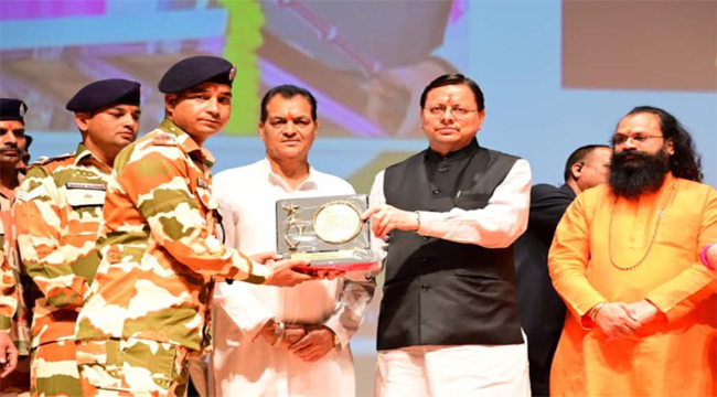 देहरादून: मुख्यमंत्री पुष्कर सिंह धामी ने पटेल नगर स्थित राजकीय दून मेडिकल कॉलेज में अर्पित फाउंडेशन द्वारा आयोजित ’’प्राइड मूवमेंट सम्मान समारोह’’ में आपदा के दौरान राहत एवं बचाव अभियान में योगदान देने पर एनडीआरएफ, एसडीआरएफ, पुलिस, आईटीबीपी के कर्मियों को सम्मानित किया गया।